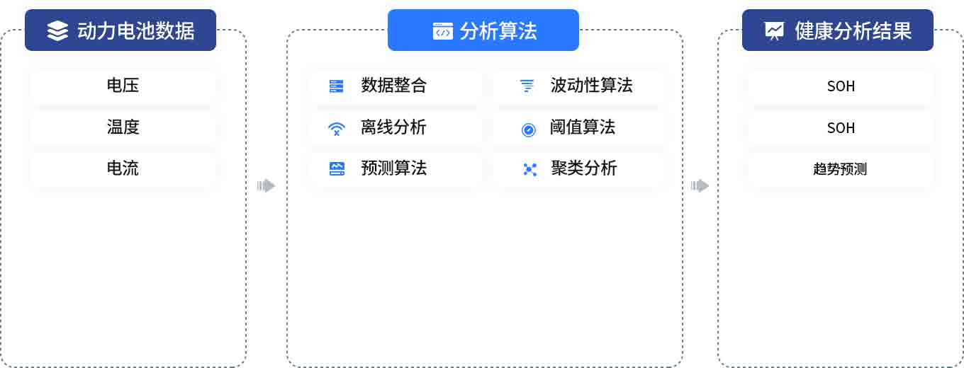平臺提供數(shù)據(jù),支持各類算法的融合、集成。算法引入后,后續(xù)數(shù)據(jù)將持續(xù)優(yōu)化分析模型,為電池健康、安全預警等功能提供分析預測的能力。