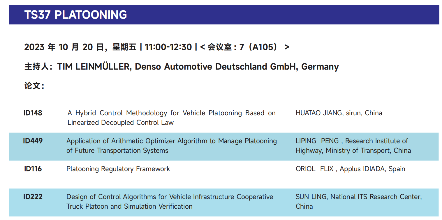 經(jīng)過(guò)ITS國(guó)際組委會(huì)的專(zhuān)業(yè)遴選,該論文成功入選第29屆智能交通世界大會(huì)。10月20日上午,斯?jié)櫶炖蕦⑹苎麉⒓蛹夹g(shù)論文會(huì)議:TS37 Platooning,屆時(shí)將對(duì)論文內(nèi)容進(jìn)行技術(shù)解讀,并介紹斯?jié)櫶炖试?/span>V2X網(wǎng)聯(lián)環(huán)境下車(chē)輛列隊(duì)行駛方面所做的相關(guān)工作。