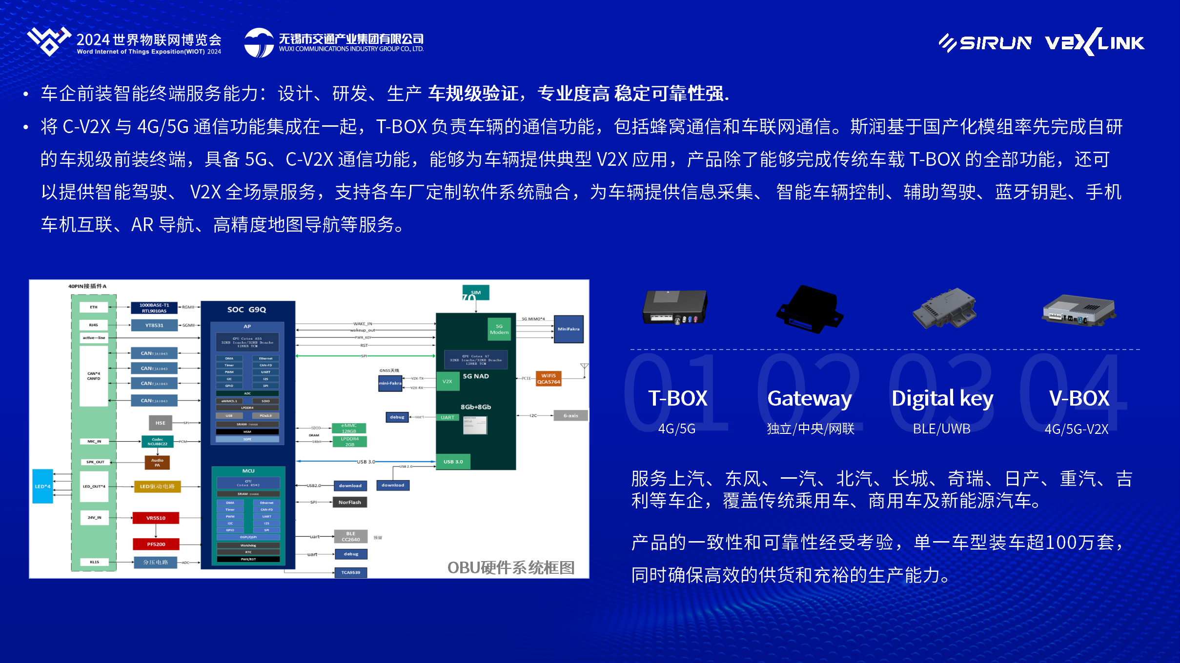 此外,斯?jié)櫶炖蔬€具備強(qiáng)大的前裝智能終端服務(wù)能力。公司設(shè)計(jì)、研發(fā)、生產(chǎn)的智能終端產(chǎn)品已經(jīng)廣泛應(yīng)用于傳統(tǒng)乘用車(chē)、商用車(chē)及新能源汽車(chē),單一車(chē)型出貨量超100萬(wàn)套,產(chǎn)品的一致性與可靠性得到市場(chǎng)的廣泛認(rèn)可。這些智能終端產(chǎn)品不僅能夠完成傳統(tǒng)車(chē)載T-BOX的全部功能,更能夠提供智能駕駛、V2X全場(chǎng)景服務(wù),為車(chē)輛提供全方位的信息采集、智能車(chē)輛控制、輔助駕駛等多元化服務(wù)。