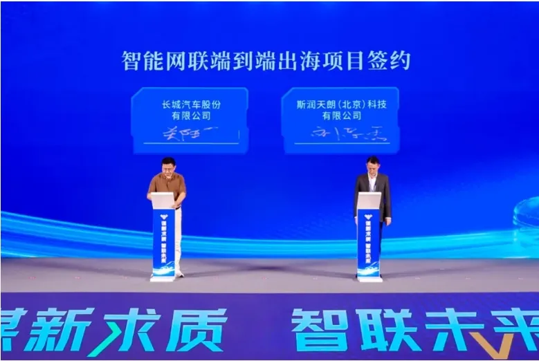 值得一提的是,在不久前舉辦的第五屆中國(guó)(無錫)車聯(lián)網(wǎng)產(chǎn)業(yè)發(fā)展論壇暨智能網(wǎng)聯(lián)汽車“車路云一體化”生態(tài)大會(huì)上,長(zhǎng)城汽車與斯?jié)櫶炖收胶灱s智能網(wǎng)聯(lián)端到端出海項(xiàng)目。這一合作標(biāo)志著雙方將攜手共繪智能網(wǎng)聯(lián)汽車出海新藍(lán)圖,共同推動(dòng)中國(guó)智能網(wǎng)聯(lián)技術(shù)走向全球市場(chǎng)。