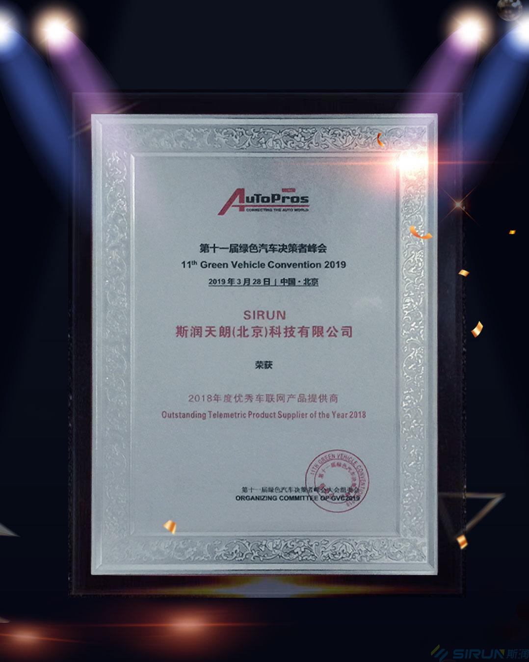 AuToPros 第11屆綠色汽車決策者峰會(huì)于2019年3月28日在北京舉辦,在“第十一屆綠色汽車決策者峰會(huì)”頒獎(jiǎng)典禮上,斯?jié)櫶炖蕵s獲“2018年度優(yōu)秀車聯(lián)網(wǎng)產(chǎn)品提供商”和“2018年度優(yōu)秀電動(dòng)車核心零部件提供商” 雙獎(jiǎng)項(xiàng)。